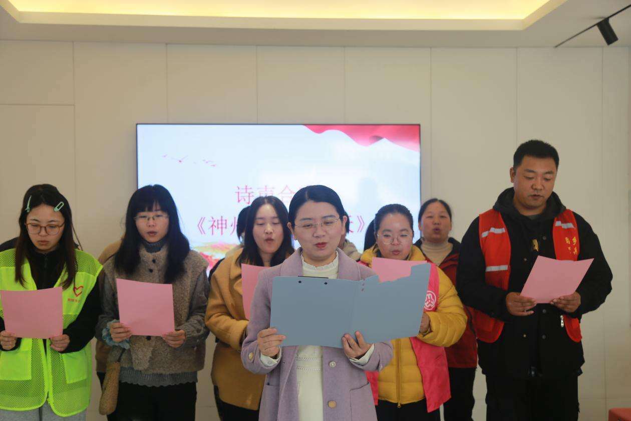 活动在全体人员齐诵《神州处处是春天》中推向高潮。“春风拂过万家门,神州大地气象新……”激昂的诗句、饱满的热情,展现出基层群众对美好生活的向往和对国家发展的坚定信心,为本次分享会画上圆满句号。