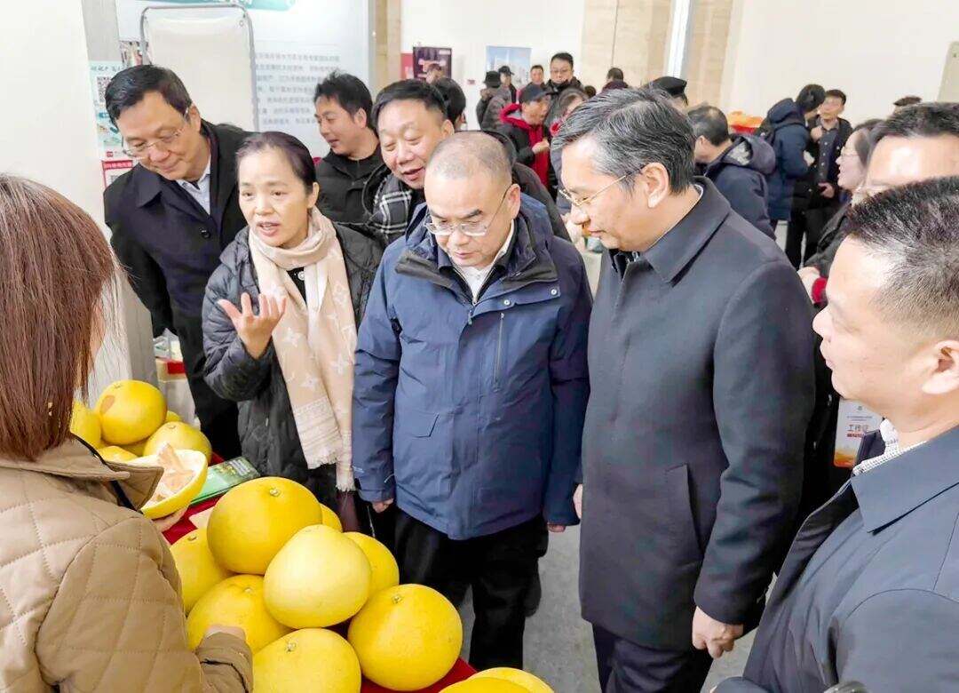 农业农村部农产品质量安全监管司司长马洪涛、浙江省农业农村厅厅长李迎宾等莅临“玉环文旦”展位考察,点赞玉环“黄金果”,希望继续发挥优势,持续扩大文旦产业“联农带农”共富成效。