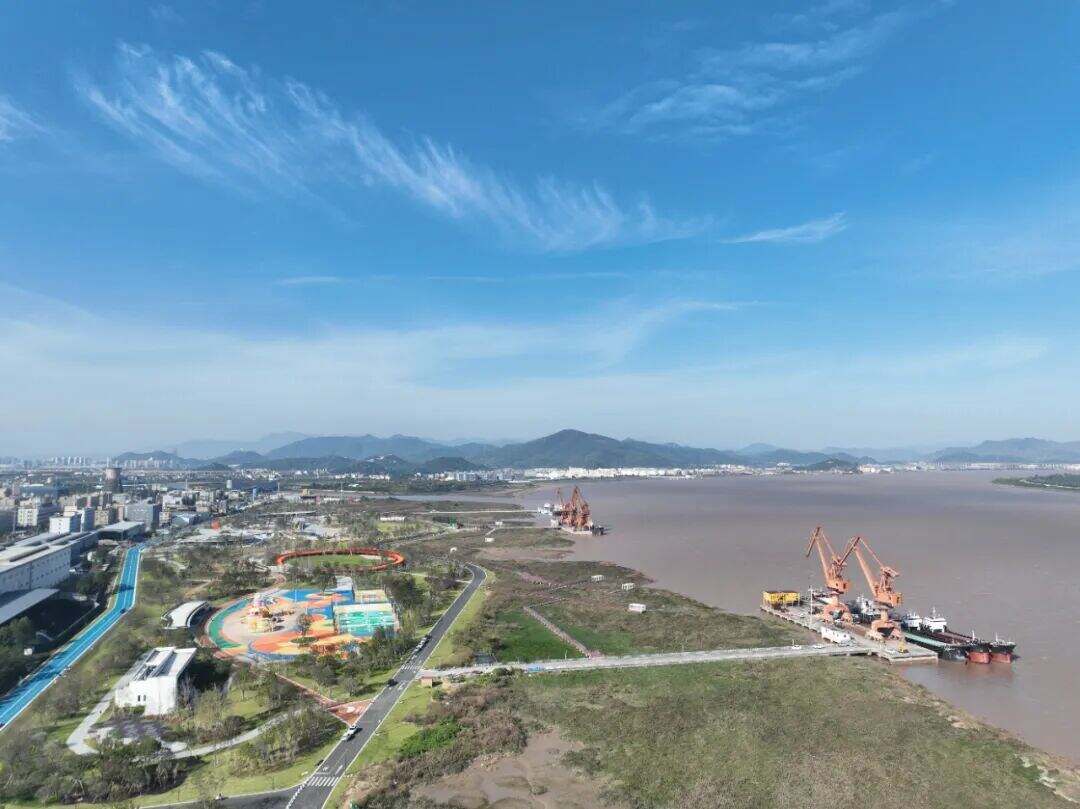 黄岩区“海塘安澜”工程项目,位于椒江南岸,西起永宁江闸外右侧,东至三山小普陀,总长度2.908公里,总投资5.17亿元。工程于2022年11月启动建设。通过提标椒江河口段海塘2.66公里,将防洪(防潮)标准由原设计的50年一遇,提高至100年一遇,并同步推动海塘沿线生态环境质量的提升。海塘沿线新建涵闸1座,封堵沿线涵闸2座、旱闸8座,生态修复滩地49万平方米,建设码头1座,配套建设行车道1.8公里,地下停车场1座(面积1.2万平方米)。