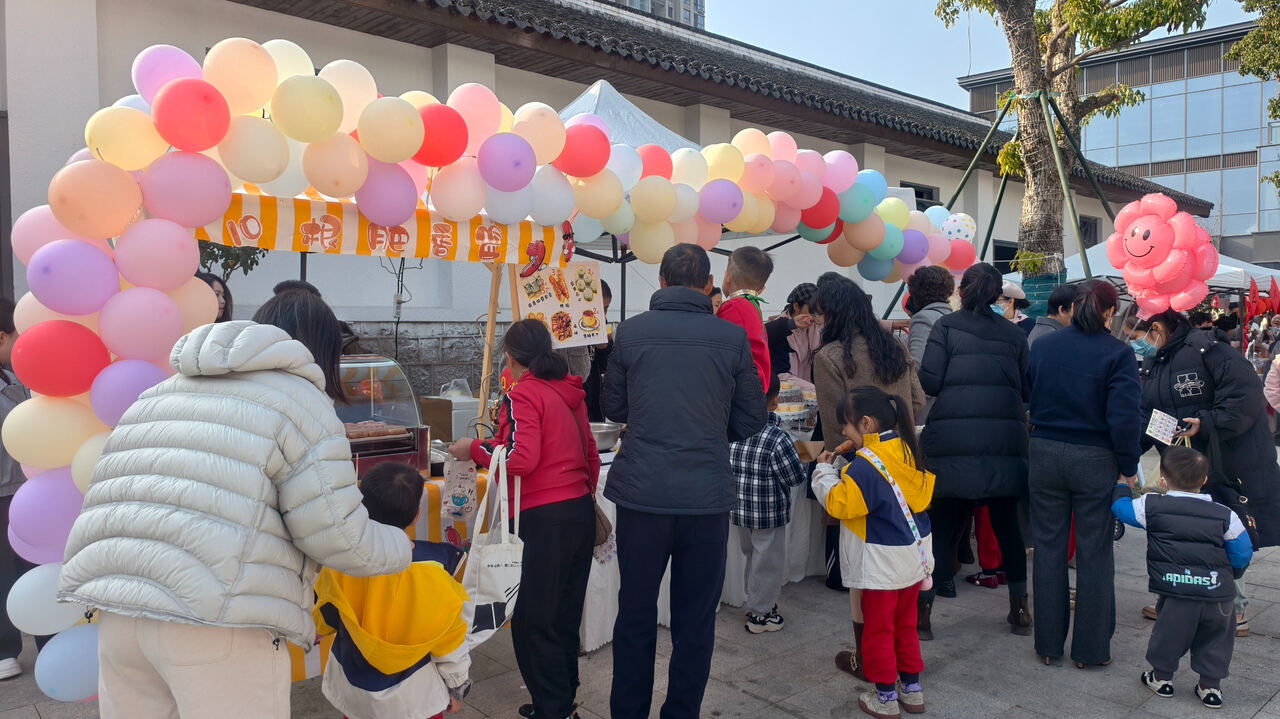 这已是温岭市方城幼儿园推出的第6场美食节了。有别于往年的各类主题,此次特地结合了绘本故事与传统节气元素,场地也特地选在了极具老温岭底蕴的月河天地文化街区。白墙黑瓦下,20余个班级的摊位有序排布。