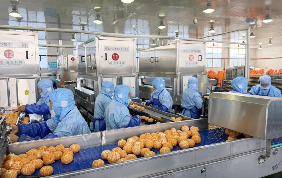 走进生产车间,一颗颗金灿灿的橘子正沿着智能生产线欢快“奔跑”。经过自动清洗、精准分选、灌装和连续低温杀菌等多道工序后,这些罐头即将发往美国、加拿大等10余个国家和地区。“眼下我们13条生产线满负荷运转,每天开工12小时,生产计划已经排到了2026年春节。”该公司品质管理负责人罗吉丽介绍说。