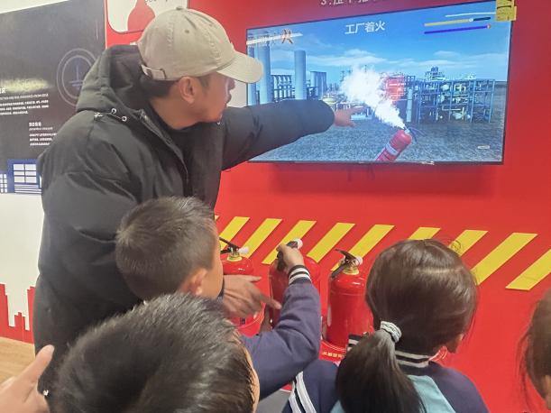 在模拟灭火系统前,孩子们更是跃跃欲试。在讲解员的指导下,他们握紧“灭火器”手柄,对准模拟火焰根部,按下“开关”,看着“火焰”逐渐熄灭,脸上露出了自豪的笑容。在防溺水、防触电显示系统区域,讲解员通过动画演示、互动问答的方式,让孩子们快速掌握“不独自玩水”“湿手不碰插座”等常识,将安全知识牢记心间。