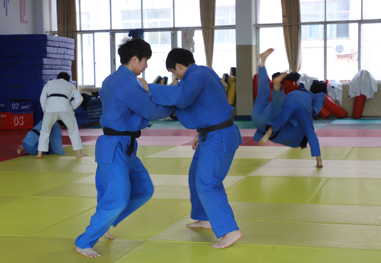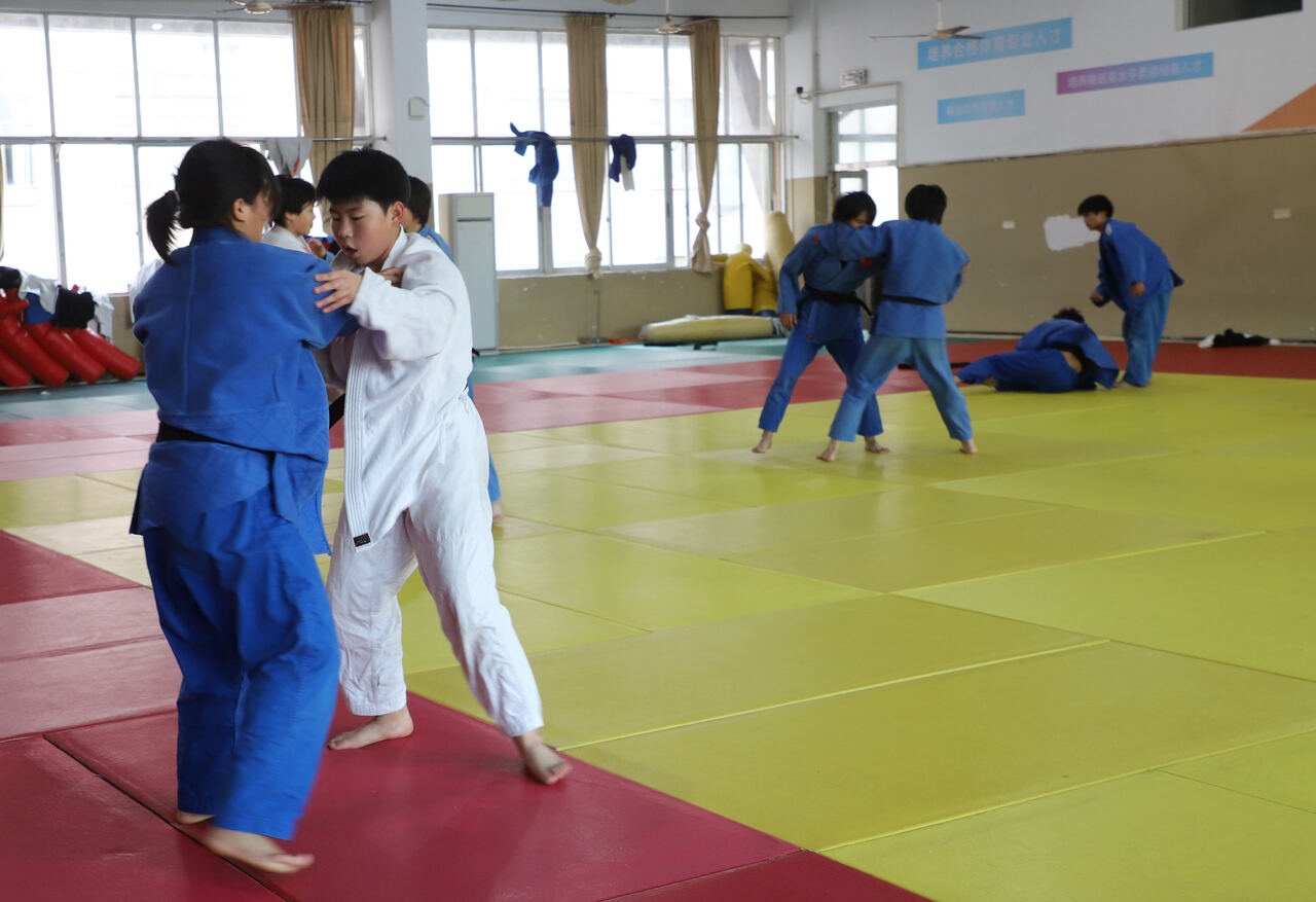 图为松门中学柔道馆内,学生们在加强练兵备战明年省运会。