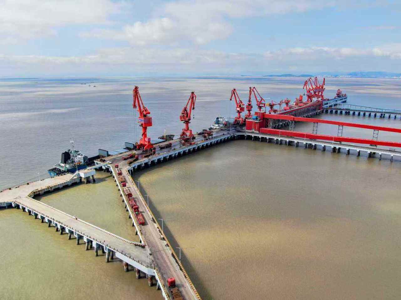凭借“深水良港+广阔腹地”的禀赋优势,头门港区承接了宁波舟山港外溢航线,全力打造通江达海“大港口”。目前,头门港区进港航道一期工程通过竣工验收,三期陆域先行工程启动建设,建成运营3个5暴涨兼靠7万吨级的码头,累计开通非洲、东南亚、俄罗斯、佛得角、坦桑尼亚、澳大利亚等国家和地区多条国际航线。