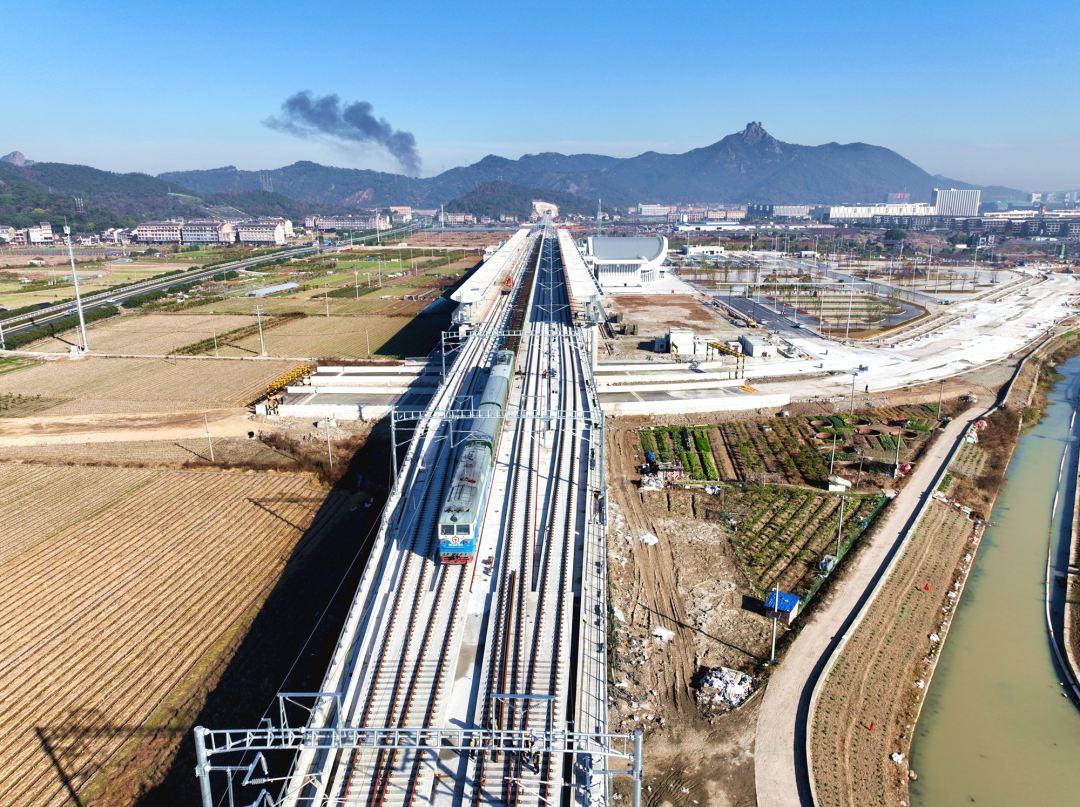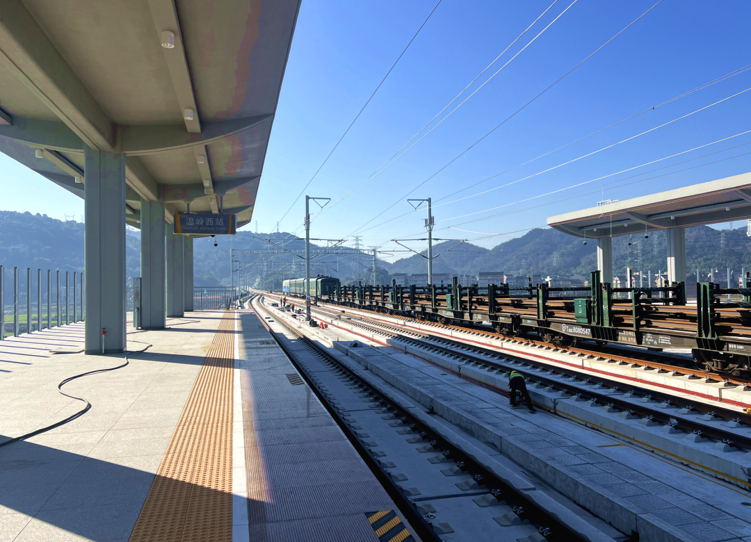 12月28日上午,在杭台高铁温玉段温岭西站施工现场,随着最后一对500米长钢轨稳稳落位并精准安装,标志着由中铁十四局承建的杭台高铁(温玉段)正线铺轨任务全面完成。