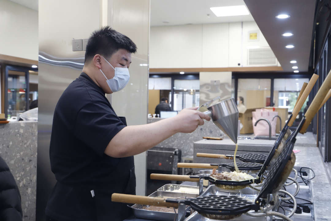 作为台州市唯一一家五星级农贸市场,万济池的“变身”始于今年9月。乘扶梯上二楼,曾经空旷的2100平方米空间早已焕然一新:知食巷的咖啡轻食店坐着办公的年轻人,海门味的传统小吃铺飘出麦饼香,渔乐圈的“阳光厨房”里,厨师正按顾客要求烹制刚买的海鲜,透明玻璃后的操作全程可见。这种“菜场+餐饮+文化”的复合场景,彻底打破了大众对农贸市场的刻板印象。