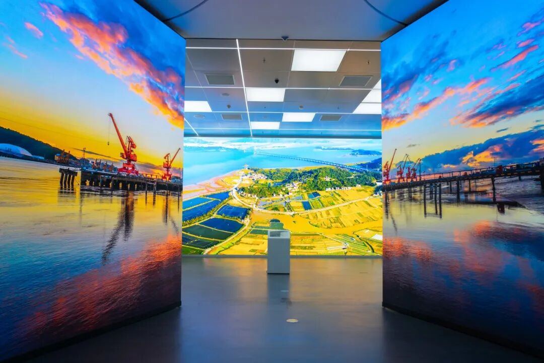 延续往届展览特点,作品通过LED、投影、3D视频等方式,声、光、电等数字技术展现,让公路风光通过数字光影,在展厅流淌,构建出沉浸式、交互式的观展空间。展览以更现代、更直观的方式,呈现出台州1号公路作为交通动脉、生态廊道与经济纽带的多元价值,让公众深切感受到“向海图强”背后的建设脉搏与山海之城的生机活力。