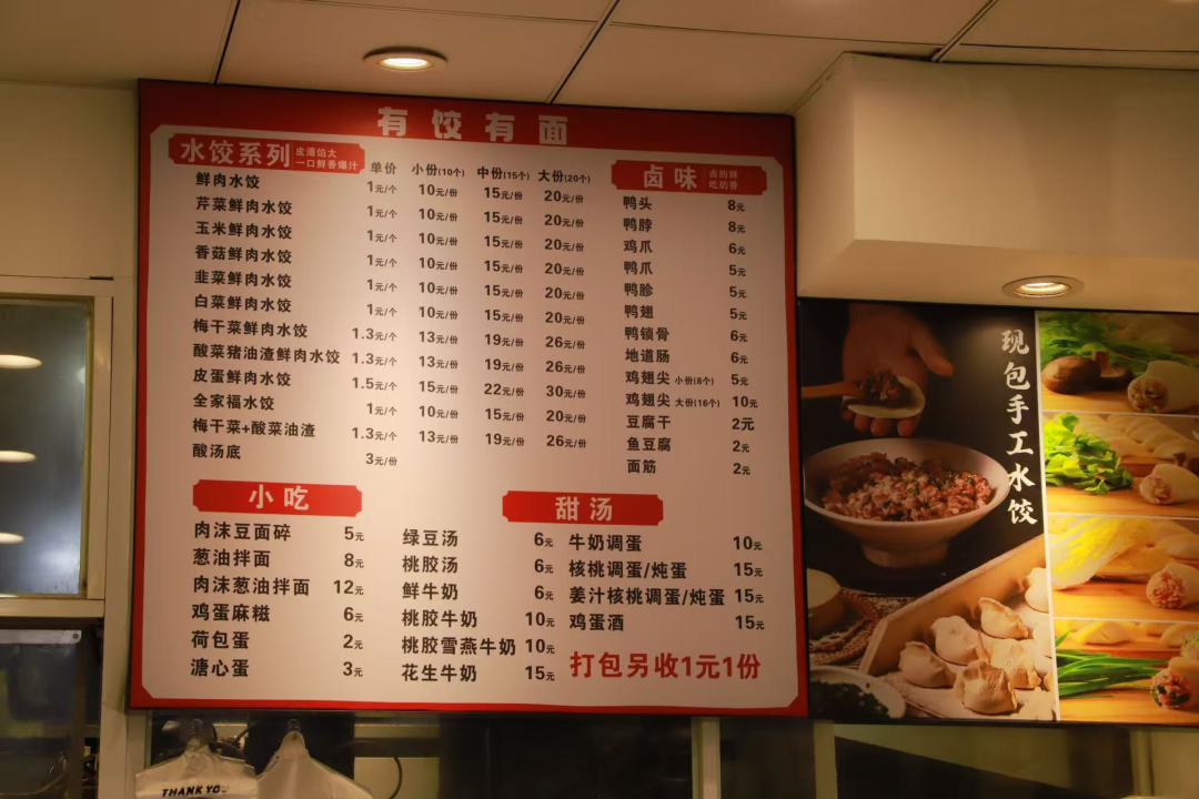 “我们店名就叫‘有饺有面’,直白点儿。”梁伟说。