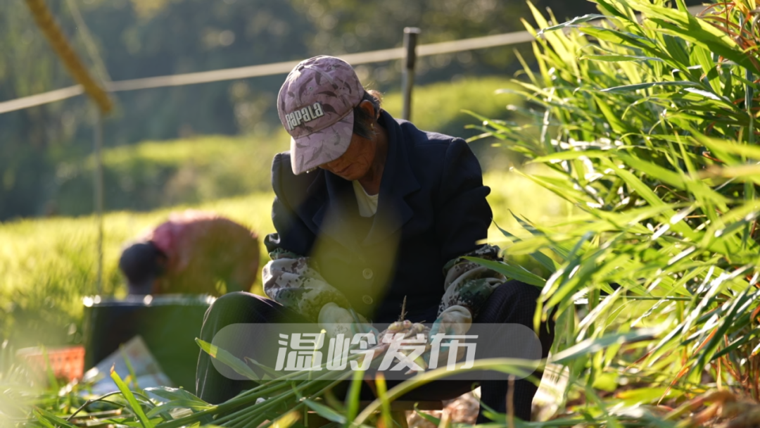 晨霜初降的时节,城南镇的田埂上,剪刀声此起彼伏。农人弯腰的弧度,与半人高的姜叶形成温柔的对称。泥土被轻轻拨开,淡黄透点粉嫩的块茎带着湿润的土腥气露出容颜——温岭的红芽姜,又到了与土地告别的时刻。
