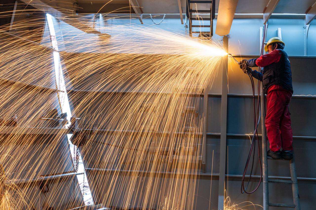 1月1日,在温岭市松门镇腾龙造船厂内,工人们正在热火朝天地施工,国内首艘民间投资建设的科考船完成合拢。接下来,将陆续进行推进器以及主要科考设备的安装与定位工作,预计将于2026年春季建成。