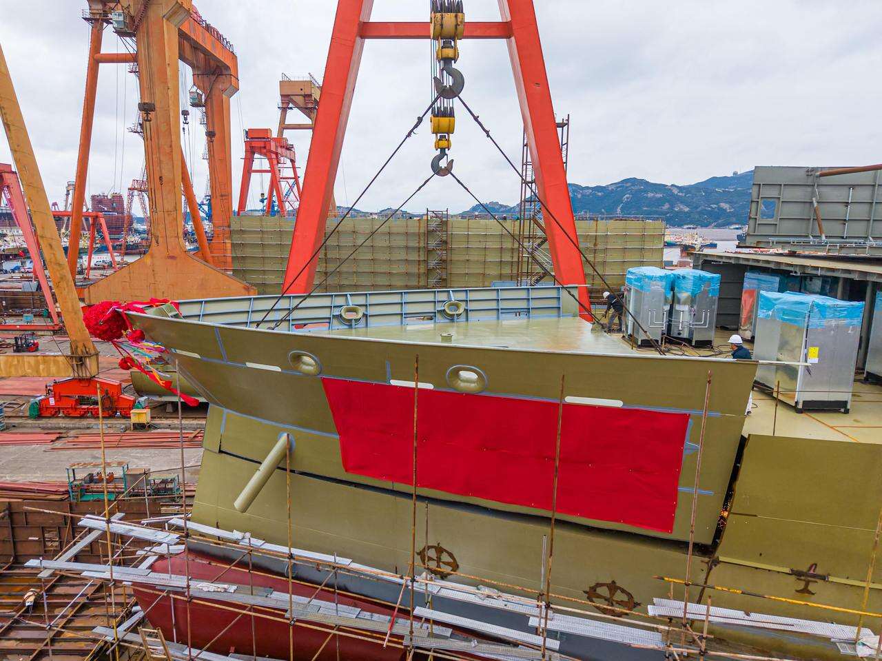科考船船体合拢。共享联盟·温岭 徐伟杰摄
