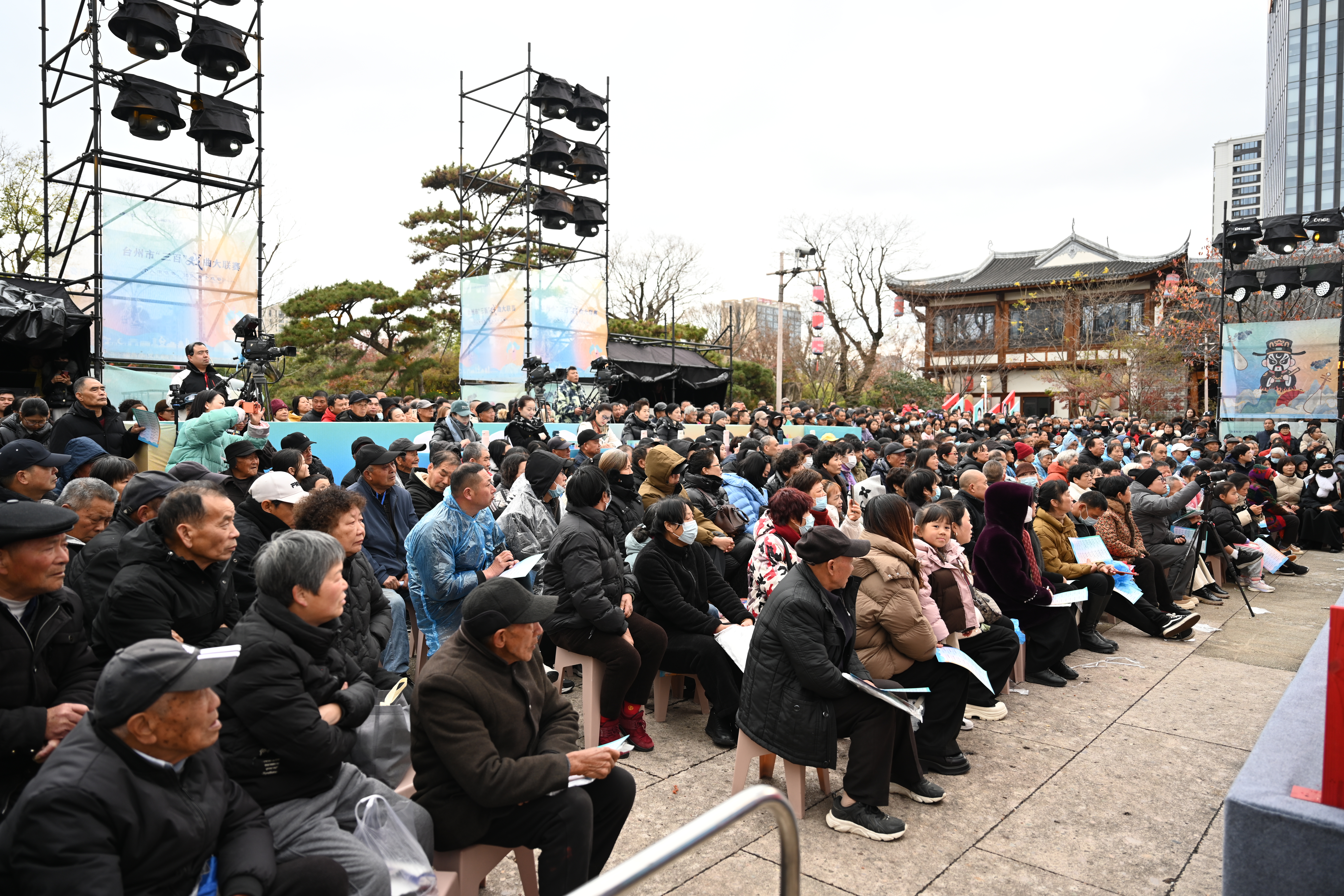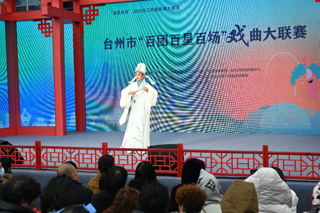 新年伊始,越韵悠扬。1月1日下午,台州市“百团百星百场”戏曲大联赛在椒江区葭沚老街启幕,来自台州各地的越剧团队、越剧爱好者,齐聚一堂,在为期三天的赛程中展开角逐。评委阵容更是引人瞩目,由孟科娟、黄美菊、陈飞、张小君、陈丽宇、鲍陈热、陈丽俐7位梅花奖得主为选手赋分。