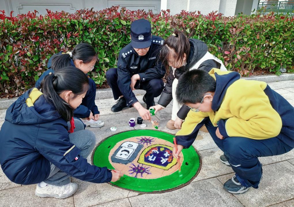 在王林洋社区,一场面向学生的“反诈小卫士”活动在北师大台州实验学校展开。民警叶锡文结合游戏充值、冒充客服退款等常见骗局,生动剖析诈骗套路,讲解“不听、不信、不转账”三不原则。随后的窨井盖彩绘环节,学生们将反诈标语与创意漫画绘于井盖上,让日常设施成为“会说话”的反诈宣传阵地。