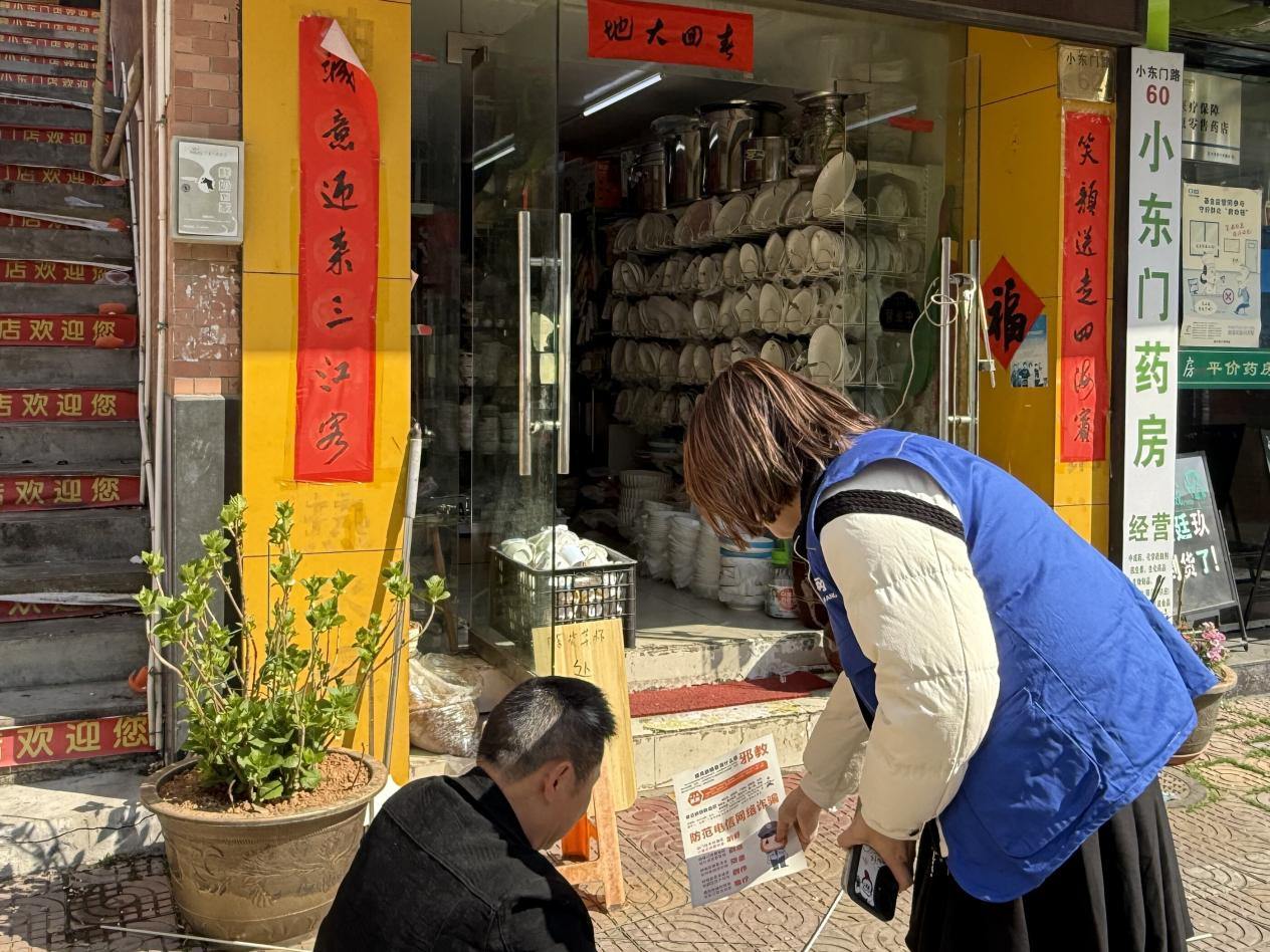 山亭社区则瞄准辖区商铺经营户,开展“反诈护商”入户宣传。工作人员沿街走访,针对经营户易遭遇的货款诈骗、冒充订货、收款码调换等骗局,结合货款诈骗、冒充订货等典型案例,为商户讲解防骗要点,提醒商户们提高警惕,仔细核验交易信息,遇到可疑情况及时求助,筑牢经营“安全门”。