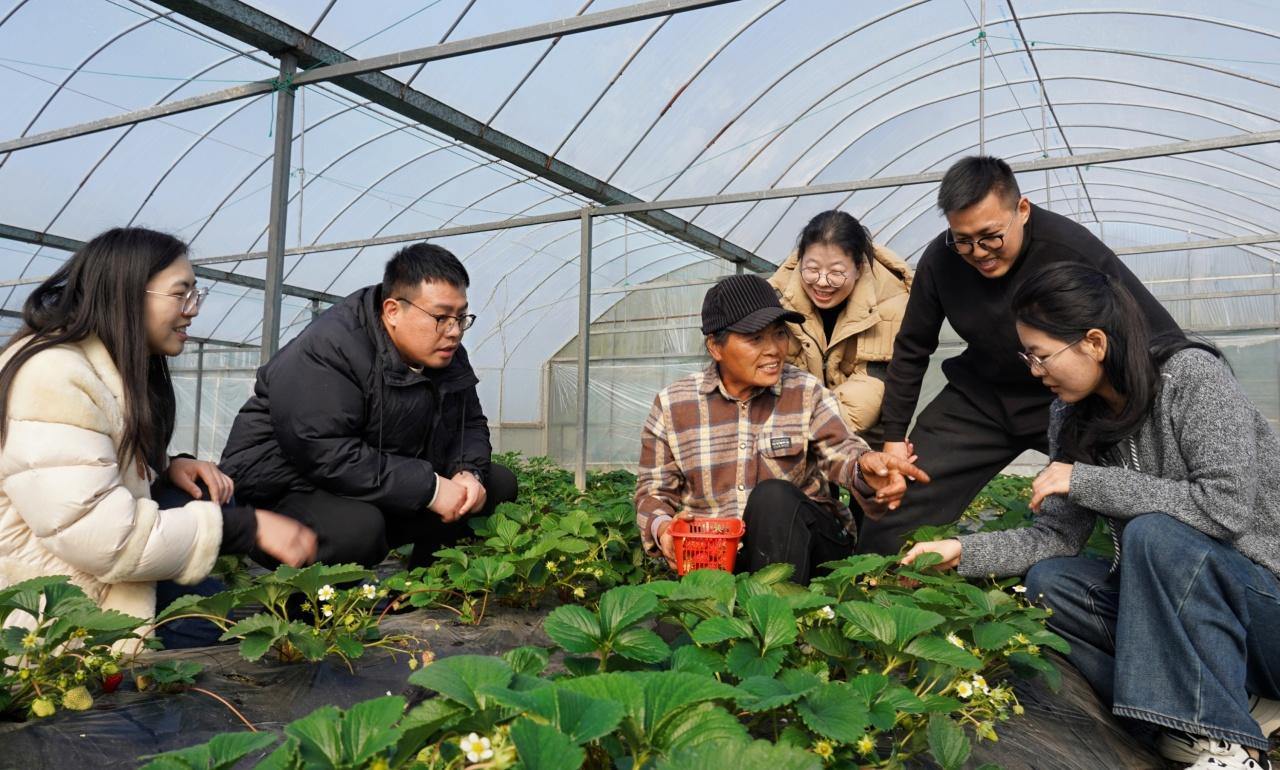 这是滨海镇“浙青年·爱学习”活动的新年第一课。小组成员们深入农庄草莓与小番茄种植基地,向“土专家”“田秀才”现场请教,在田间地头开启了一堂生动的现代农业实践课。活动现场,青年干部们认真聆听种植户讲解草莓的植株修剪、病虫害防治以及小番茄的水肥管理、温湿度控制等技术要点,并不时提出疑问,深入交流。