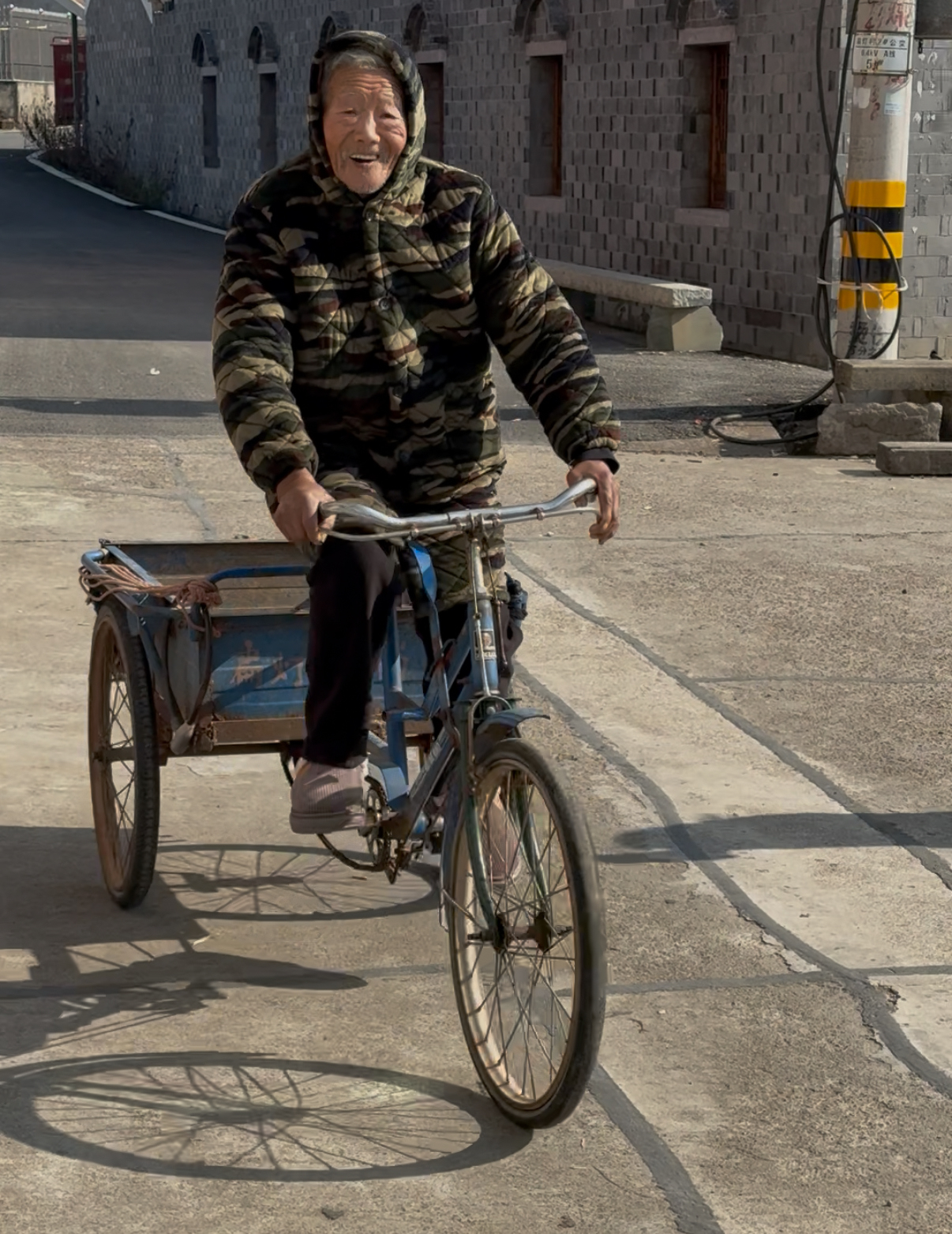 “慢点慢点,别骑这么快!”1月7日,在天台县街头镇扁灯村,103岁老人孙顶国骑上三轮车,如同脚下生风,一转眼便到百米开外了。