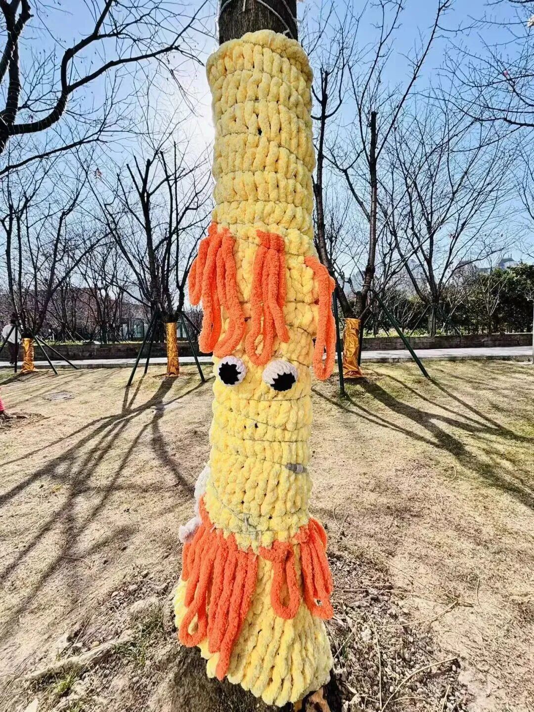 毛衣大树作为限定的风景线,待来年天气转暖便会及时拆除,不影响树木生长。