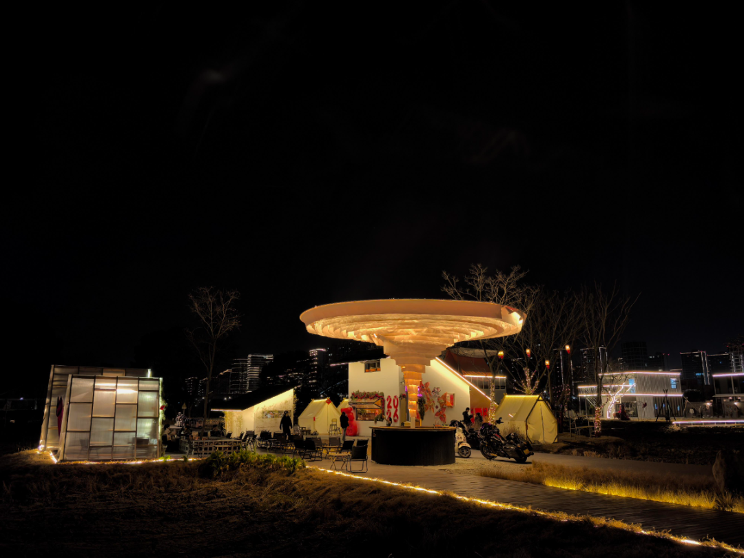 沿一江山大道拐进小路,田野间几幢风格各异的建筑格外醒目。最前方两幢三角形屋顶的房子,搭配网红龙卷风纱幔装饰,屋里屋外早已坐满了年轻人——这里就是巨石咖啡馆。
