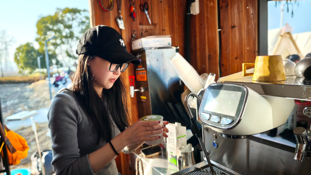 咖啡师吴家丹,被刘晓林评价为“对品质要求到了极点”。即便单日客流超600人,从早9点忙到晚10点,她仍坚持顾客点的每一杯咖啡都亲手制作,只为保证口感稳定。除了常规品类,店里的“花样”也不少:可食用杯子的甜筒咖啡、加5元就能带走的陶瓷罐咖啡,还有各类甜品与围炉煮茶,下阶段还将推出简餐,满足更多需求。