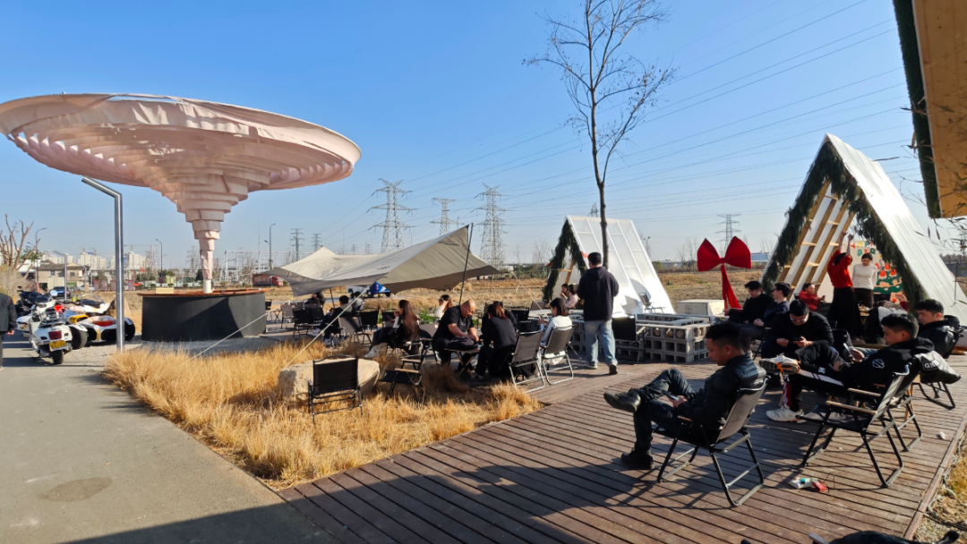 城区咖啡馆百米可见,田野间的却少见。也正因这份独特,这里成了年轻人的聚集地:三四人围坐帐篷里,喝咖啡、吃零食;或坐在折叠椅上,晒着太阳放空,惬意又放松。“12月10日开业,日常单日人流量六七百人,休息日能破千。”负责人刘晓林坦言,这样的火爆超出预期,核心原因之一便是位置与场景布置。