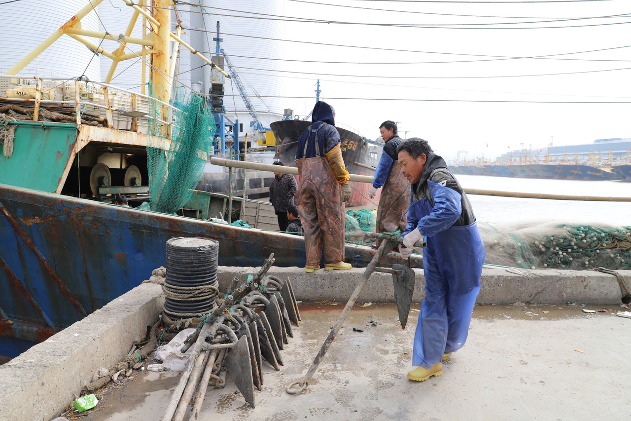 浙岭渔69131船老大说,如果海上没有大风浪,渔船还不想回港,出于安全考虑就回来了。趁这次回来,他准备把船上的铁锚给更换了。“这些锚小了,准备更换大一点的,预计会在港里待个三天时间。”