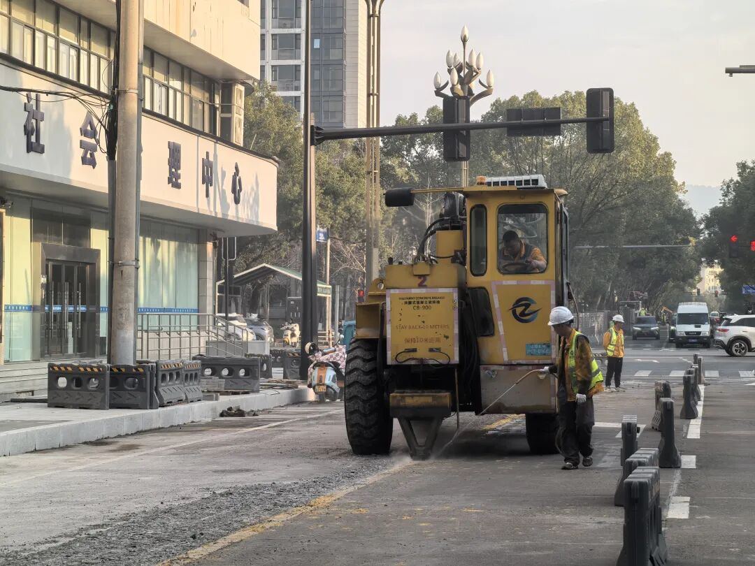 施工现场负责人金江涛介绍:“经过一个多月的施工,我们目前已经完成交安杆件的梳理、人行道基础浇筑、检查井提升以及部分建筑立面改造,全线沥青下面层的铺设同步完成。接下来,我们将继续进行人行道的PC砖铺设以及沥青面层施工,预计在春节前完成施工。”