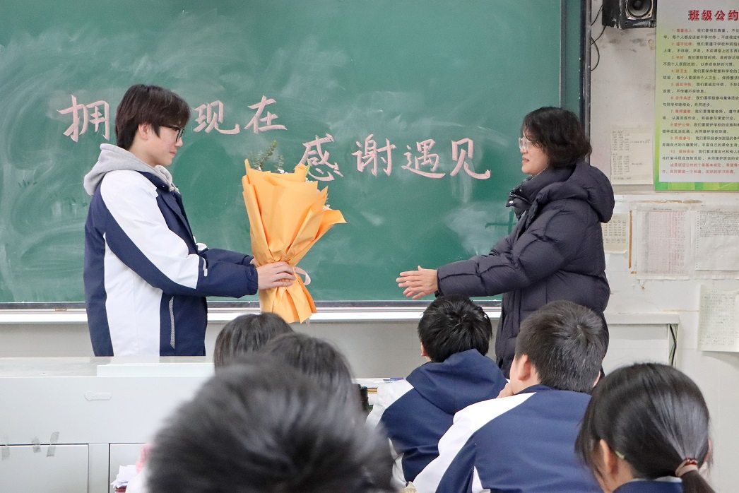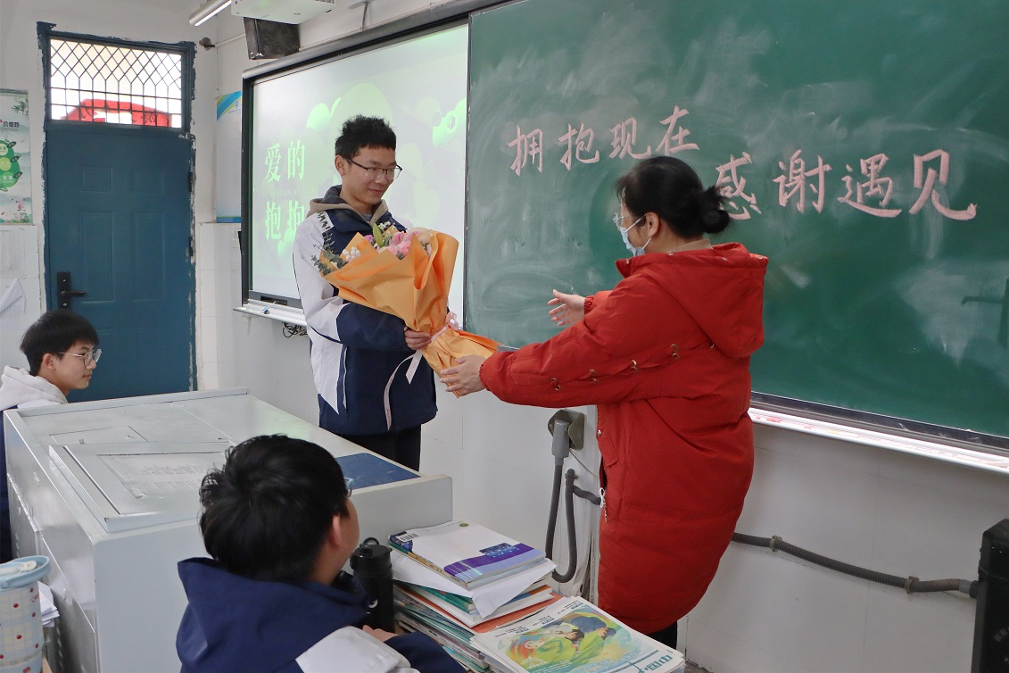 1月21日是“国际拥抱日”。这一节日的设立,旨在唤醒世人对人际关系之美的深刻洞察,让我们共同领悟拥抱背后那份不可估量的力量。当天,温岭市箬横镇中学举行“拥抱现在,感念师恩”主题班会活动,学生们在了解节日文化内涵后,自发通过送花、拥抱的方式向班主任、任课老师表达感恩之情,让紧张又挑战的学习生活拥有和融温馨、文明有礼的“新”意与精彩。