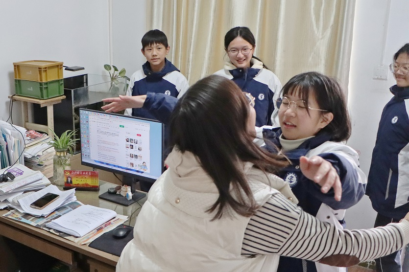 “这群孩子们太有心了。我正在改作业,没想到他们一进门,就是接连的拥抱。”陈静高兴地说,她一开始没反应过来,但随着大家的热情,她渐渐地懂了,也一一给大家回礼拥抱,并鼓励希望大家能够带着一份感恩之心去认真学习,在学业征程上勇攀高峰。