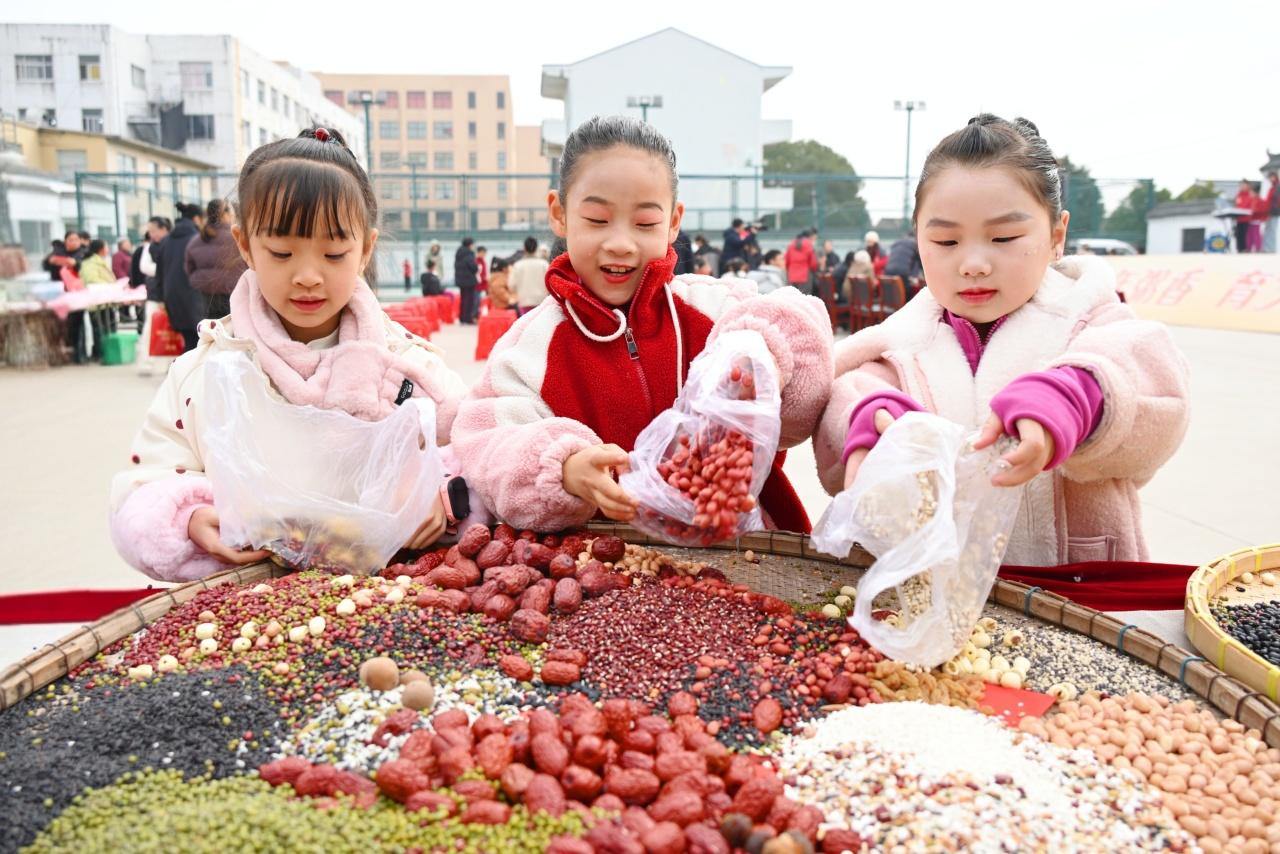 活动在充满仪式感的集米纳福中拉开序幕。孩子们将从家中带来的红豆、绿豆、糯米等各样谷物,轻轻倒入圆圆的竹匾中。每添一把米,都伴随着一个童真的心愿。颗粒汇聚,福气绵延,这不仅仅是为一锅粥准备的食材,更是对团圆、丰收与平安的朴素祈愿。