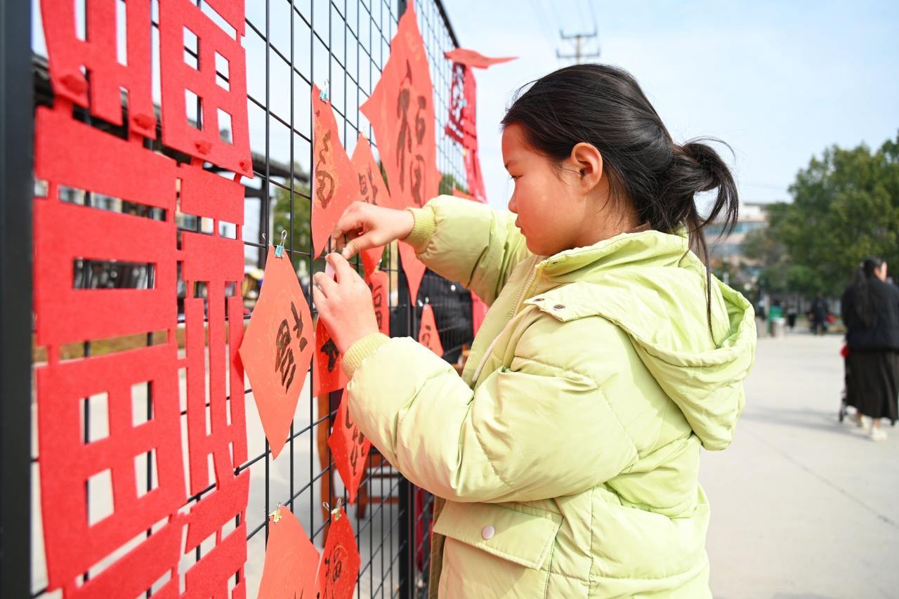粥香袅袅的另一侧,是墨香阵阵的书画天地。孩子们在红纸上认真地写下一个个形态各异的“福”字。横竖撇捺间,是对新年最直白的祝福,也是稚手童心与书法文化的一次美好邂逅。