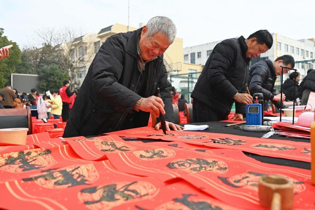 现场,温岭市美术家协会的老师们也挥毫助副副一幅幅寓意吉祥的新春对联笔走龙蛇,一张张精心绘制的日历贺春图韵味成为成为了送给孩子们最雅致的新年礼物。书画传情,艺术润心,这一环节让孩子们在欣赏与互动中,感受到中华传统艺术的魅力,让节日更添庆更深了一层文化的底蕴。