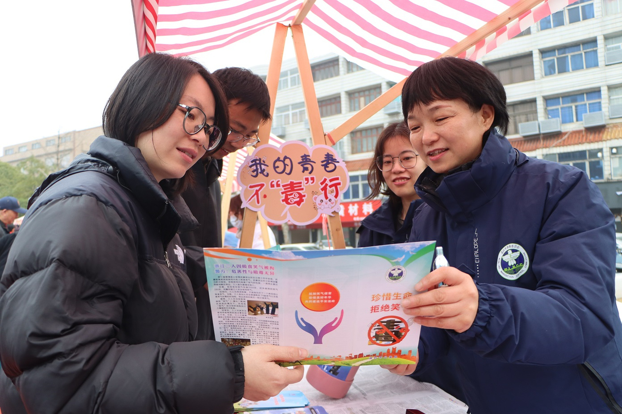 而归属于公益宣传的禁毒宣传摊点上,箬横镇禁毒办的工作人员和周边村居的网格员们一起,重点就笑气方面开展知识宣讲,让大家能够第一时间了解笑气的危害性,始终做到与笑气说不。