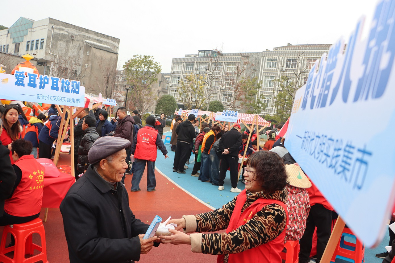 温岭市箬横镇团浦公园,腊八节的欢乐劲儿正在一场以“好人”为C位的“文明集市”中“热气腾腾”。1月26日,数十名红马甲、绿马甲等志愿者们在“台州好人”朱国兵、余志花等人的带领下,摆出公益腊八粥、义诊、免费写福等各式摊位,以“文明集市”广邀市民,让大家在暖心的氛围中享福利、趣玩学,切实将文明理念、便民服务“打包”带回家。