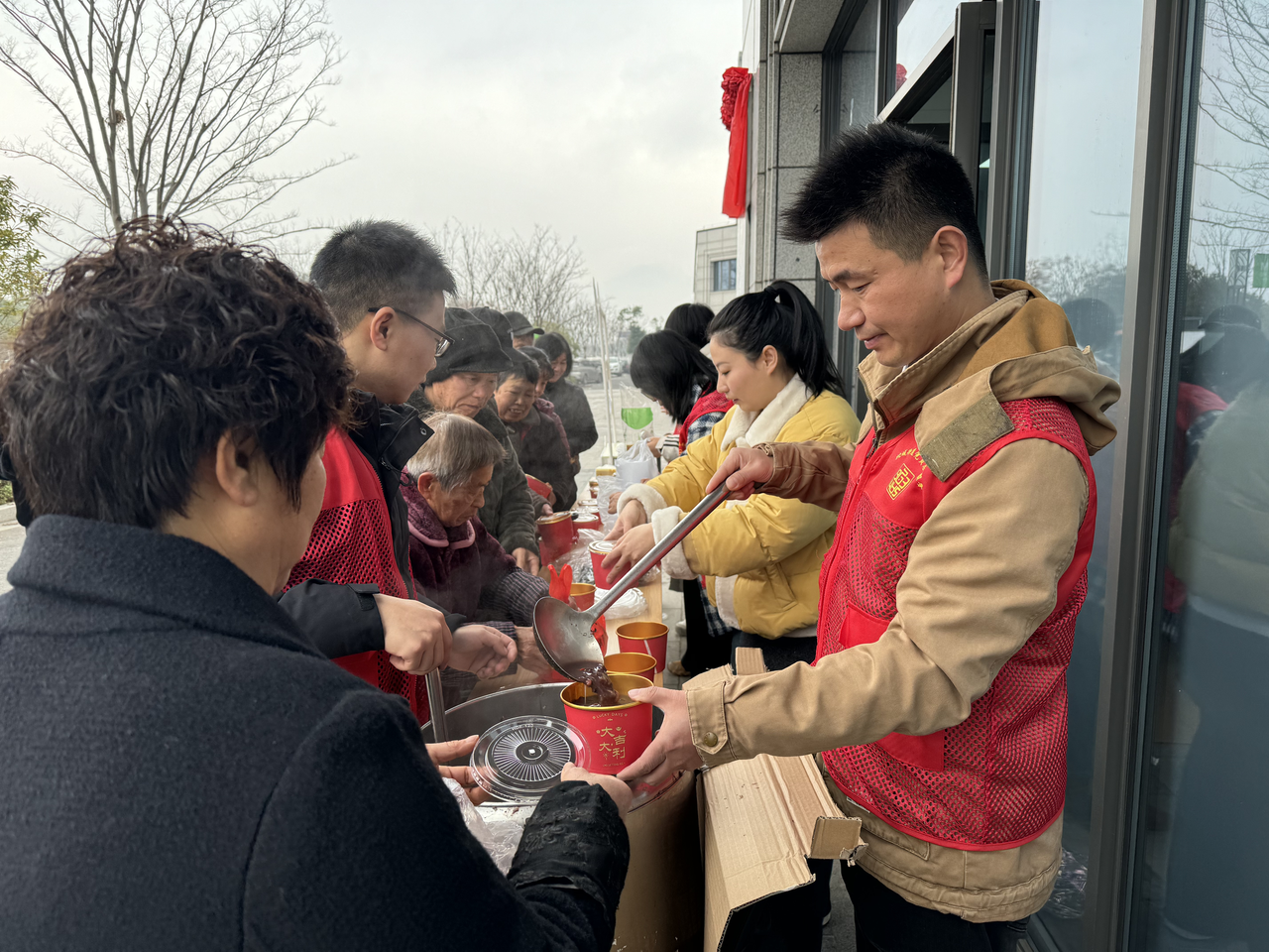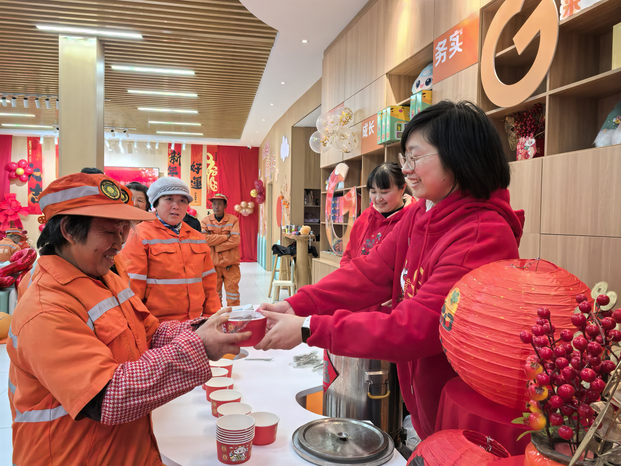 桔源社区聚焦城市劳动者,推出 “粥到暖到 致敬城市美容师” 活动。社区志愿者将腊八粥逐一送到环卫工人手中并送上新春祝福。现场还设置趣味手指操教学、传统剪纸体验、写福字送福礼等互动环节,大家围坐畅谈家常、倾诉心声,让环卫工人在暖胃暖心的同时,深度感受传统文化魅力,进一步营造出尊重劳动、关爱劳动者的浓厚社会氛围。