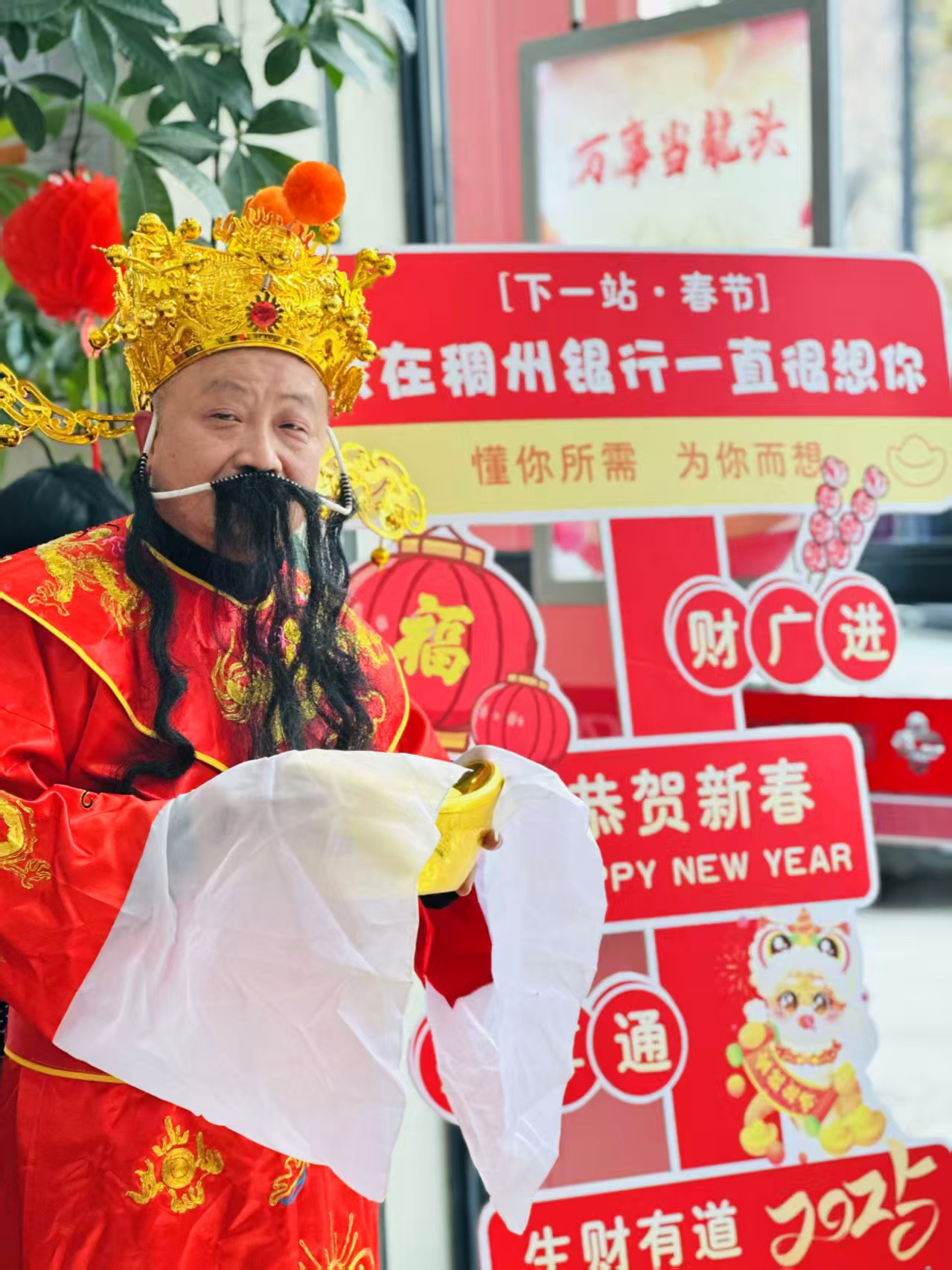 岁至腊月初八,年味渐浓暖意融。为传承中华传统民俗,1月26日,台州分行辖内24家网点同步启动“腊八送福·财神临门”特色主题活动,员工化身“福禄寿喜财”五路财神,手捧氤氲暖粥,将腊八的仪式感与金融服务的温度送到每一位客户身边,让这个寒冬因一场双向奔赴的温情互动而格外暖心。