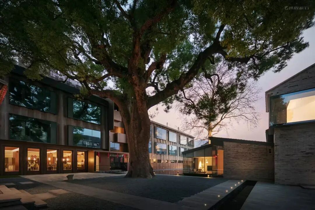 古城巷弄深处,府城印的门头略显低调,往里走,行至走廊拐弯处,眼前豁然开朗。酒店中央,500余年的古樟树虬枝盘曲,树影婆娑之间星星点点,游走在斑驳的马头墙以及新落成的玻璃幕墙上。