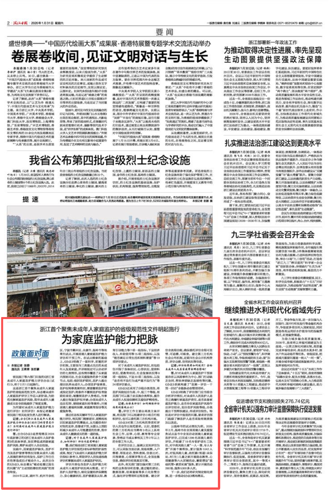 这是浙江首个聚焦未成年人家庭监护的省级规范性文件,标志着未成年人家庭监护评估工作迈入新阶段,为防范化解家庭监护风险、筑牢未成年人健康成长安全防线提供了制度支撑。