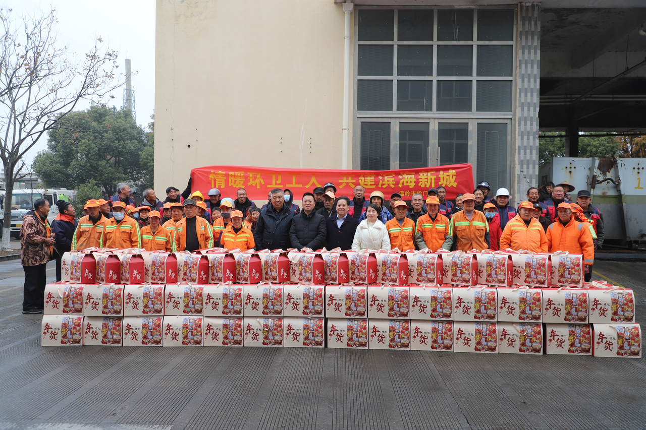 慰问活动别出心裁地采用了“流动送暖+集中分发”的形式。商会企业家们从育英路出发,沿着金港路、鲸山路等主干道,一路寻访忙碌的身影。每当看见环卫工人的马路上的身影,慰问车辆便缓缓靠边停下。企业家们下车迎上前去,将沉甸甸的年货礼盒递到他们手中,并真诚道一声:“师傅,辛苦了!提前给您拜个早年!”收到这份意外的惊喜,许多环卫工人连声道谢,朴实的话语中满溢感动。