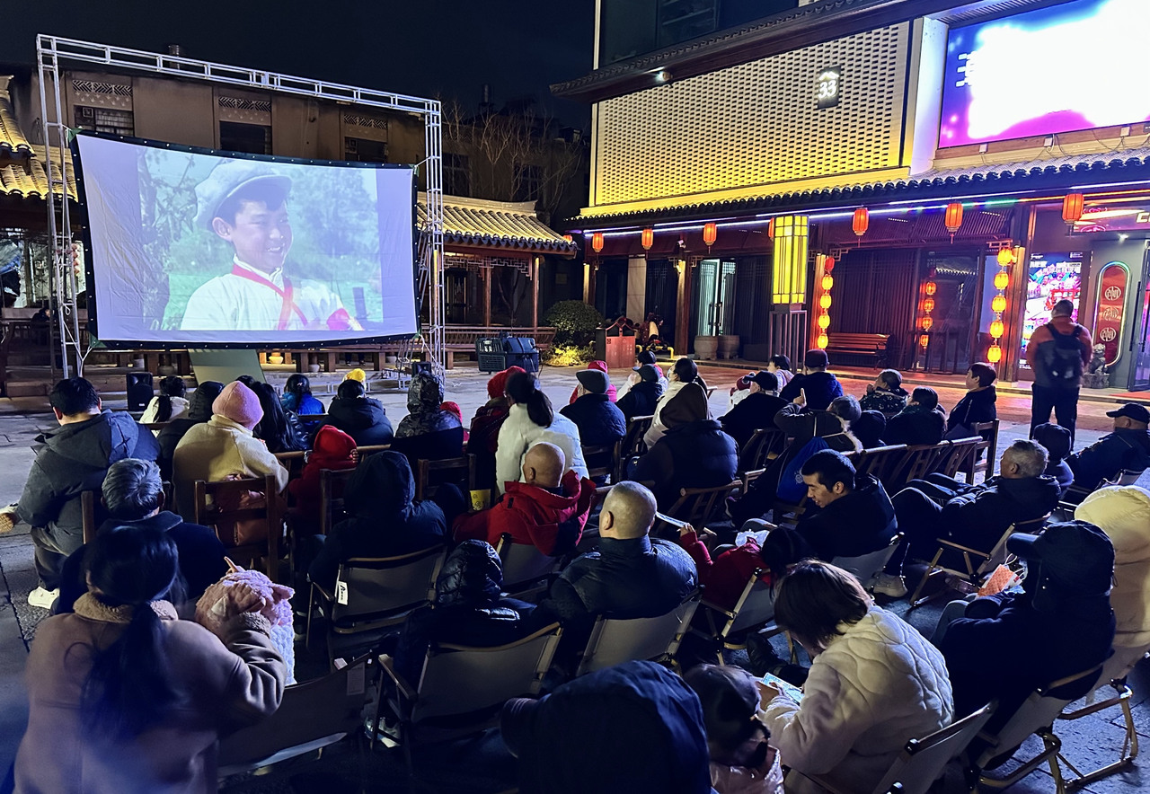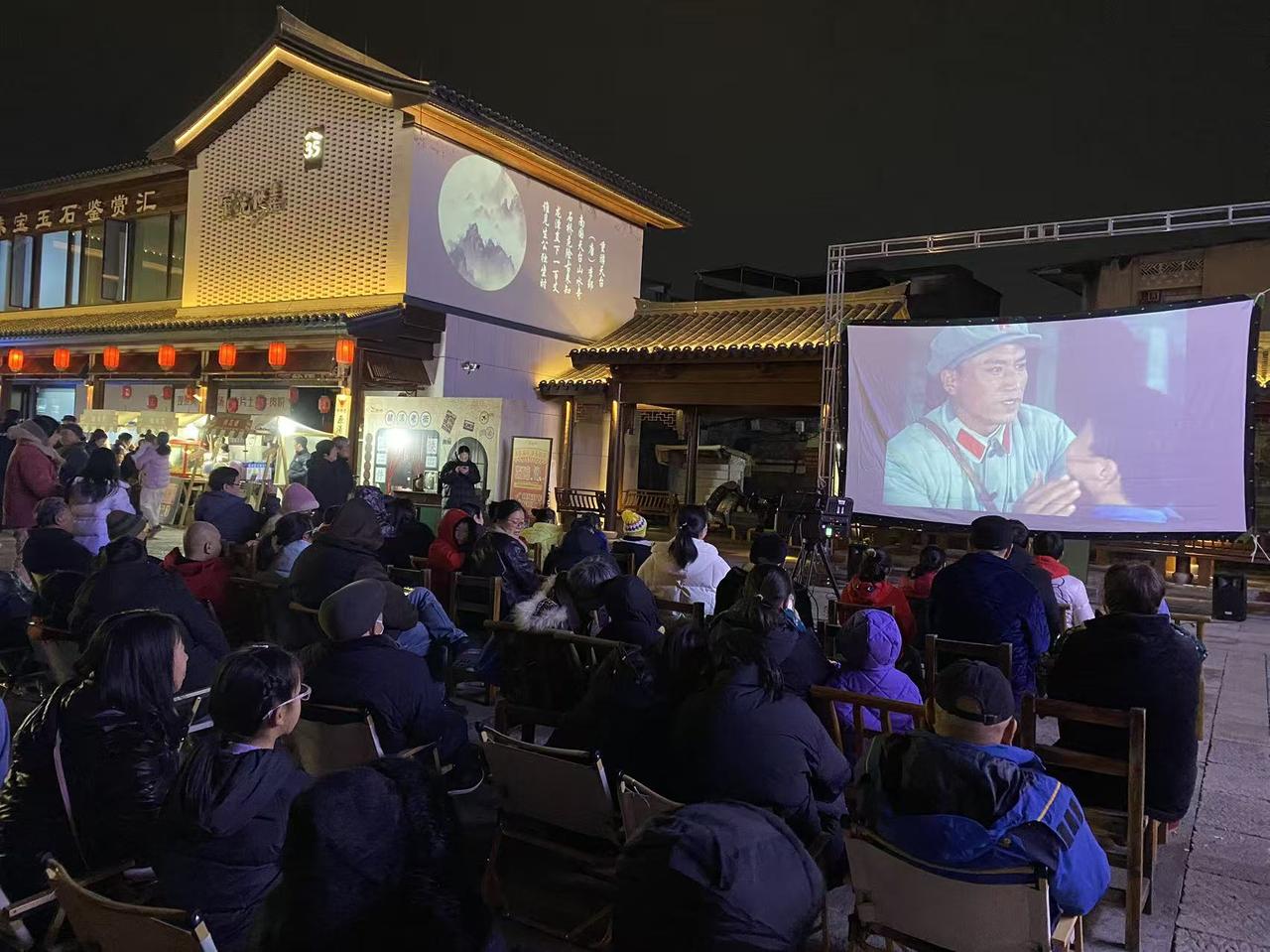 2月1日晚6时30分,天台县赭溪老街永清广场上演露天怀旧电影。活动以光影为媒,重现邻里相聚的温馨场景,现场设有复古打卡点与怀旧小市集,供应爆米花、糖葫芦、棉花糖等传统零食,还设有舞龙、空竹演出,这场沉浸式体验,既是对无手机时代集体欢乐的追忆,更能拉近邻里距离,邀市民在青石板路上共赴穿越时光的温馨之约。