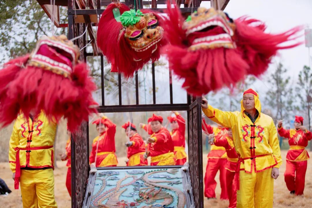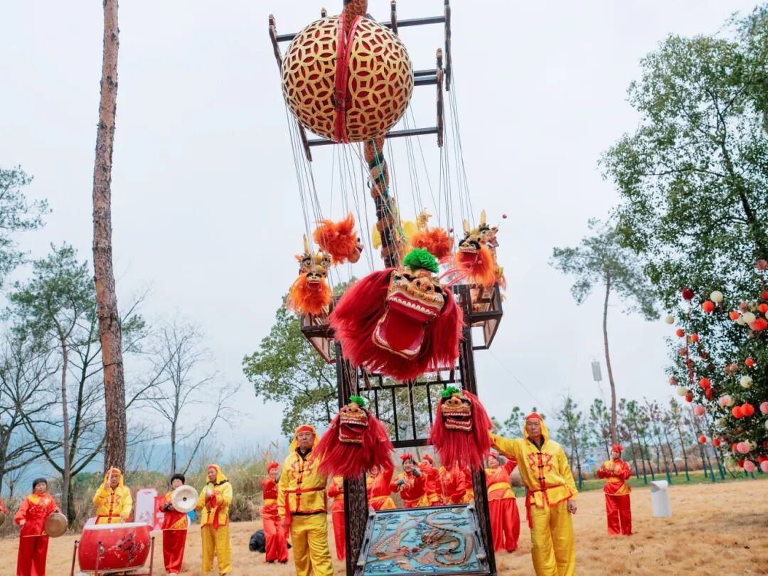 非遗表演更是将整场活动的氛围推向高潮。铿锵有力的仙居大鼓,擂响了新春的激昂序曲;国家级非遗项目九狮图的惊艳登场,瞬间点燃全场热情。九头小狮子时而跳跃腾挪,时而俯身扑抢,围着主狮口中的圆球灵活穿梭,在空中完成前后腾跃、上下纵扑等一系列高难度动作,引得现场观众阵阵喝彩。