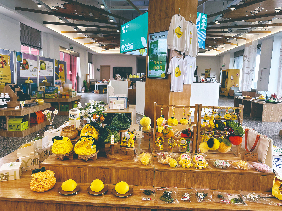 一旁的多个展柜里,陈列着文旦精油、文旦皂、铜制文旦摆件等本土文创产品。这些产品大多来自本地企业或手工作坊。郑晓与合作方约定,商品售出后的利润按三七比例分配,三成留给会客厅维持运营,七成直接归村集体所有。“东西卖出去了,村里有了收入,做东西的人也更有干劲。”