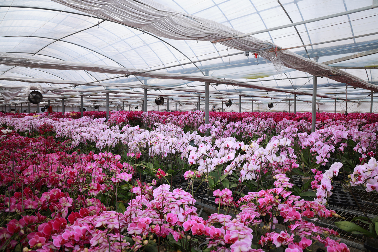 蝴蝶兰属兰科,因其花形似蝴蝶而得名,素有“兰中皇后”之美誉,既可作盆栽观赏,也可用作鲜切花、花篮插花素材,长期以来都是花卉市场的“宠儿”。“今年我们的蝴蝶兰以‘大辣椒’品种为主,销量十分可观,同时还引进了‘大财主’‘海洋之星’‘密桃’等新品种,丰富产品供给。”农场负责人符莹芝介绍,农场主要以线下销售为主,客户涵盖单位团购、花店进货及零售市民。