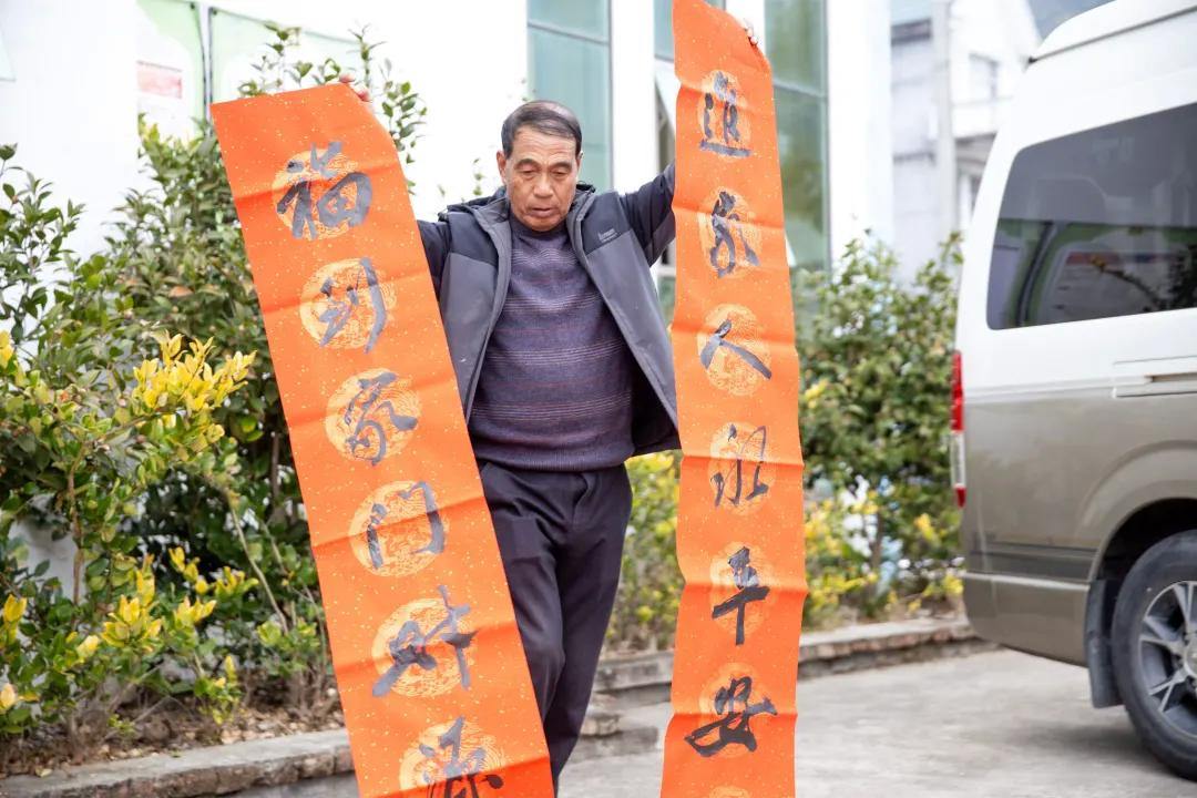 写春联区域同样热闹非凡,翰墨飘香。书法老师们挥毫泼墨、笔走龙蛇,将新春祝福与美好期盼融入一笔一画之中。“春回大地千山秀,福降人间万户欢”“健康相伴添祥瑞,山海同心促共富”,一副副寓意吉祥、字迹工整的春联和“福”字接连出炉,既有辞旧迎新的美好祝愿,也有对群众健康平安的诚挚祝福。村民们围在一旁,挑选着心仪的春联,拿到墨迹未干的春联时,脸上洋溢着幸福的笑容,纷纷称赞“春联写得好,祝福送到了心坎里”。