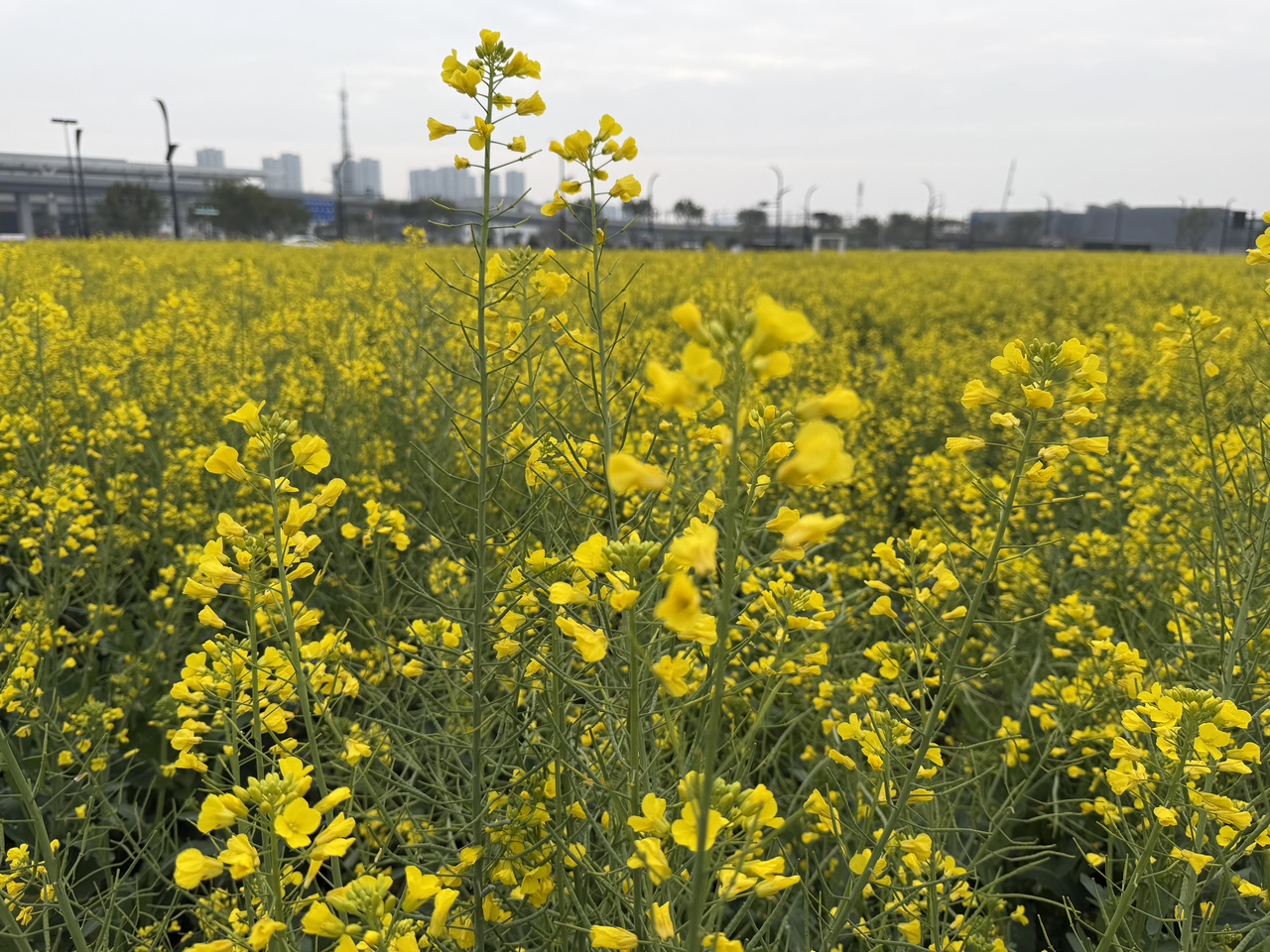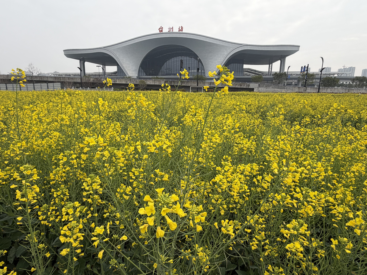 在杭台高铁台州站站前广场的附近,从今年1月份开始,这里的大片“迎春一号”油菜花盛开,也成为了市民休闲游玩的好去处。