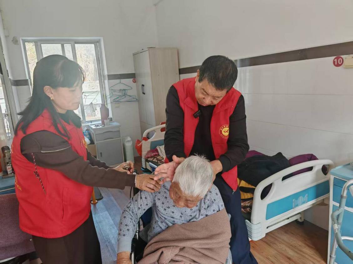 2021年,林新方发起“康乐夕阳”公益项目,针对农村留守老人需求,创新“生活照料+医疗保健+精神慰藉”三位一体养老模式。项目覆盖温岭市7个养老院及周边470位老人(含困难家庭老人),通过定期上门服务、建立健康档案、组织文艺活动等方式,让老人感受到“不是亲人胜似亲人”的关怀。林新方记录的两本健康档案册叠起足有10厘米厚,纸页被摩挲得边角起皱,却成了老人们最安心的“健康指南”。为了让服务不“走过场”,他还学起了推拿按摩,自费购买《经络学》《老年常见病推拿手法》,每天下班后背穴位、练手法,手指酸痛得握不住筷子就用热水泡一泡。掌心磨出的厚茧,成了老人们最信赖的“疗愈印记”。