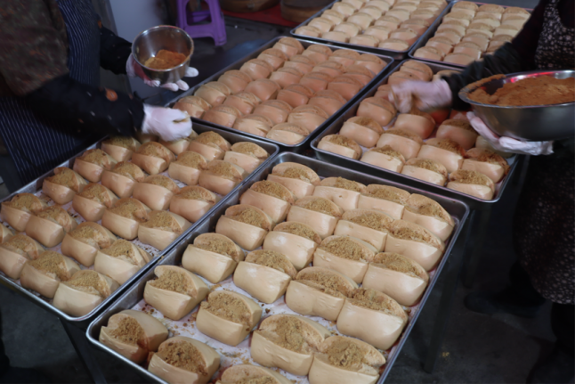 仙居馒头形态多样、年味十足:长条形的红糖馒头扎实红润,缀以枸杞、葡萄干,是年宴上的“重头戏”;方块红糖馒头小巧可爱,深受孩子们的喜爱;圆白馒头饱满质朴,麦香醇厚。红白相映,满是喜庆。