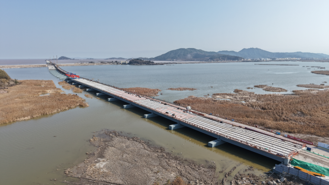 截至目前,各关键节点正稳步推进。累计完成引桥钢栈桥5400米搭设,引桥桩基已全部完成,现浇墩台已完成87个、盖梁7个、横梁7根、墩柱67个,预制T梁已安装11跨,主桥墩上部结构已启动施工。