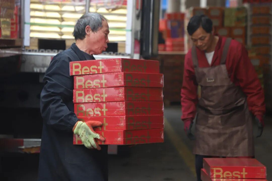 “我们的红富士都是直采自山东核心产区,糖分足、果形正,不管是散装购买还是搭配礼盒,都很受欢迎。”一家主营山东红富士的商户向记者透露,眼下正值新春采购高峰,店内销量持续增长,每天能卖出1500箱。