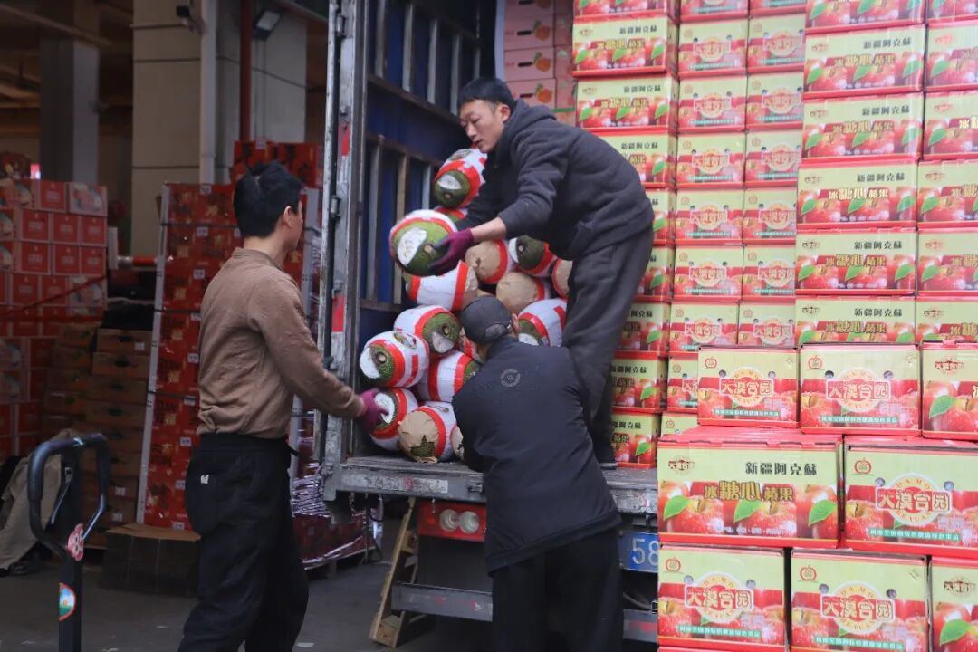 据了解,从1月底开始,农港城水果市场就进入了销售旺季,客流量和交易量持续攀升。市场数据显示,目前水果日均销量达800吨,其中苹果、香梨、车厘子等品类稳居销售榜前列。