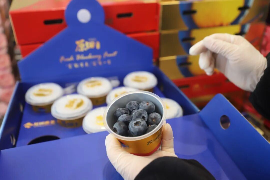 蓝莓市场也有新亮点。除了常规盒装蓝莓,杯装蓝莓因其便于清洗和携带而受到青睐。“一箱里面有8小盒,一箱价格在80元,适合家庭分享。”商家孙先生说。